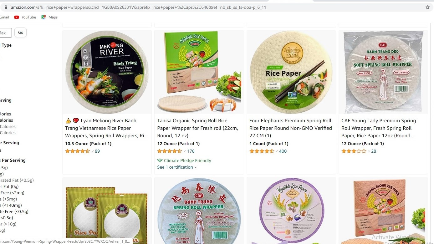 On the Amazon e-commerce site, try searching for “Rice paper wrapper” to find hundreds of items from Vietnam, Thailand, and Japan. But Vietnamese-made goods are widely available. Prices range from $8.45 to $19.99 USD for a stack of thin rice paper rolls from Vietnamese manufacturers including Mekong River, Tanisa, Binh Tay, etc.