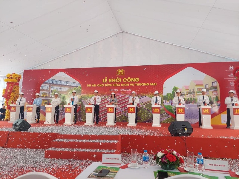 Dự án xây dựng chợ đầu mối Bích Hòa được Công ty cổ phần chợ đầu mối Nam Hà Nội khởi công tại xã Bích Hòa, huyện Thanh Oai, Hà Nội sáng 6-4.